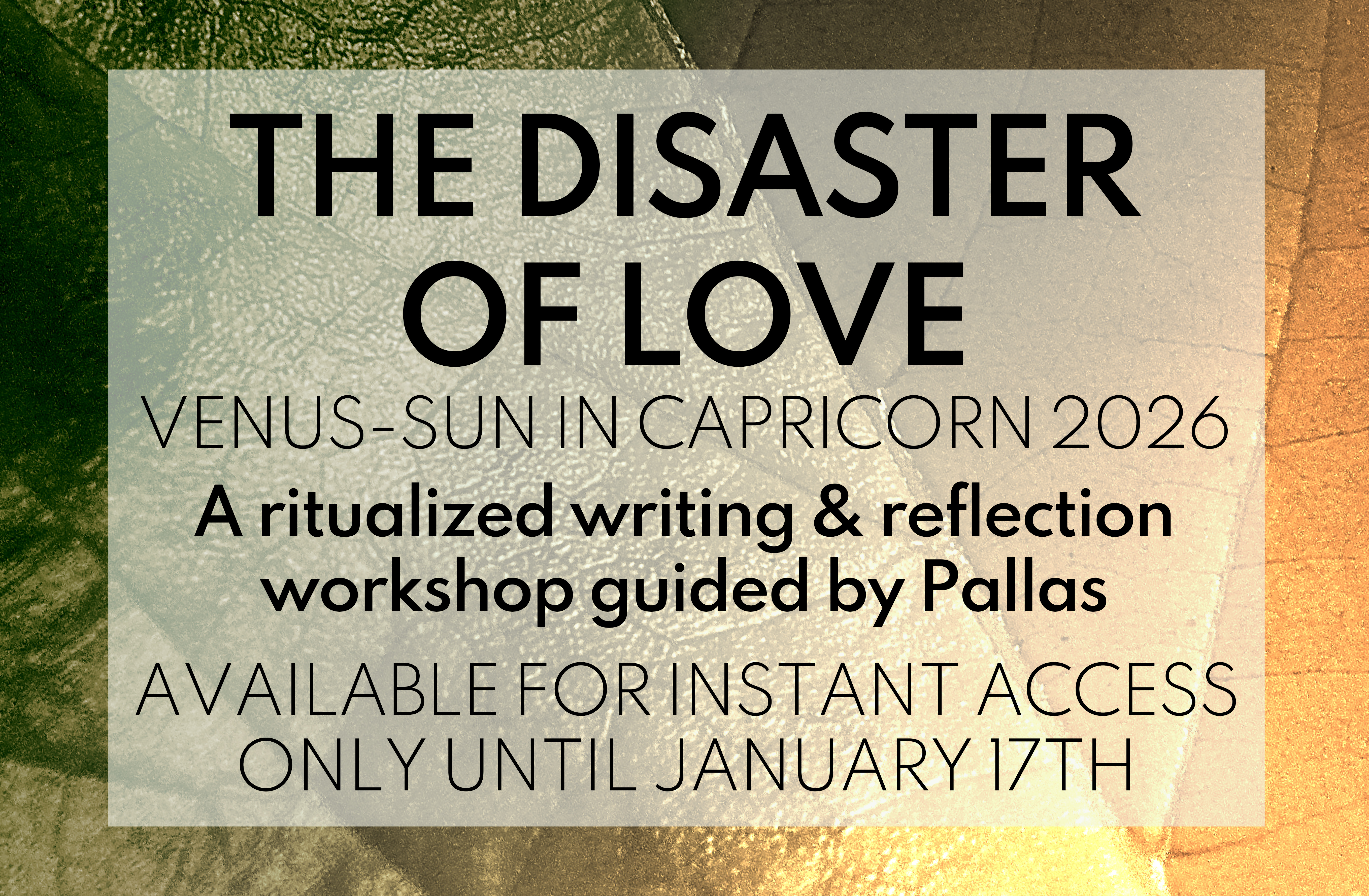 You want to make time for some quiet reflection and writing held by Pallas' trusted guidance, in time for Venus' meeting with the Sun, available ONLY until January 17th.
